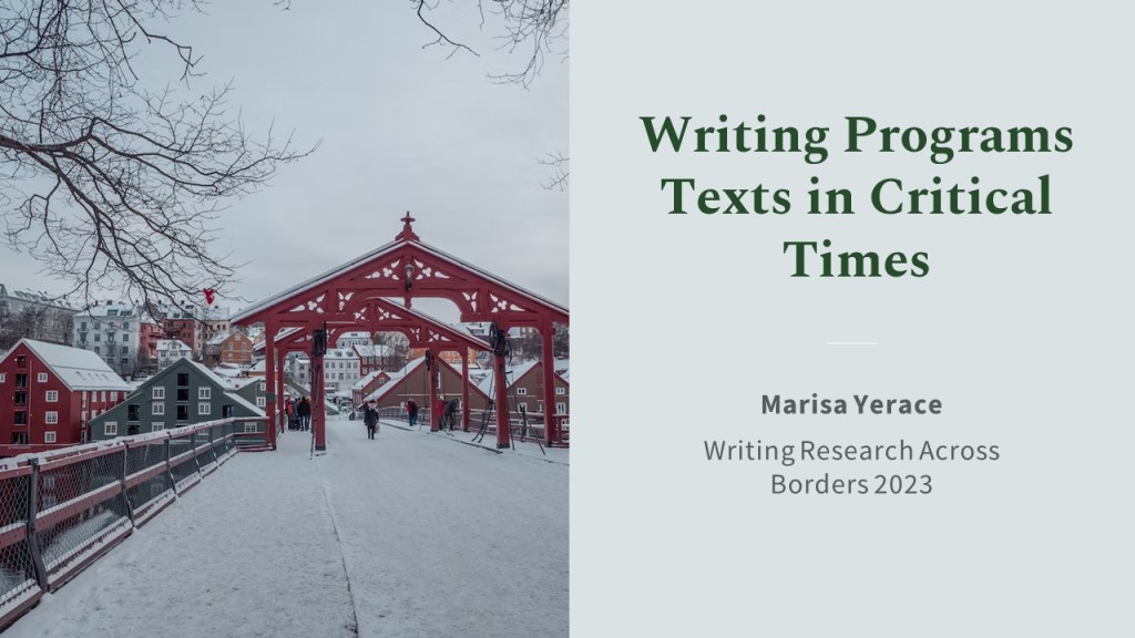 This page contains more information for my presentation, “Writing Programs Texts in Critical Times,” at the Writing Research Across Borders conference, February 18-22, in Trondheim, Norway. A special hello to my fellow WRAB attendees!