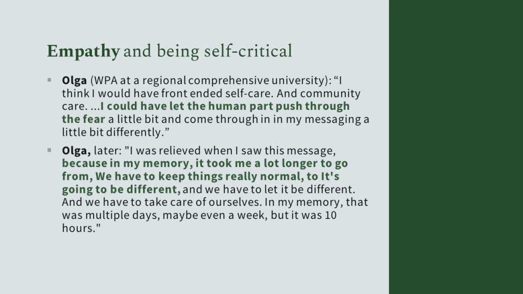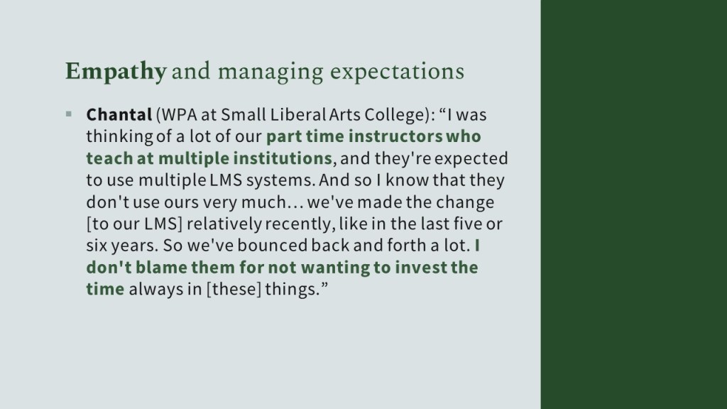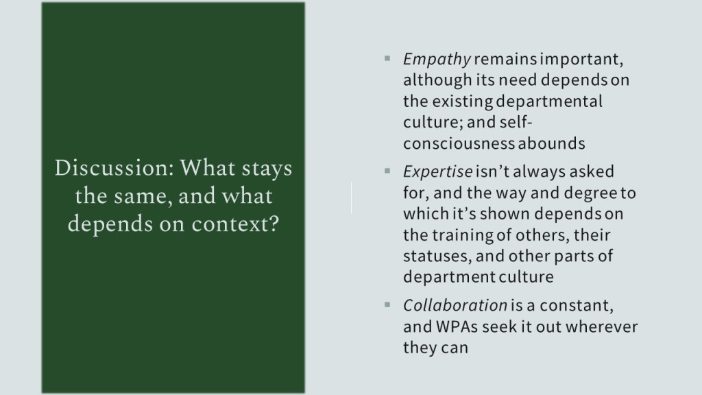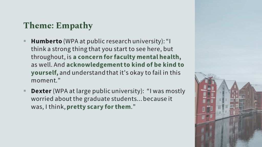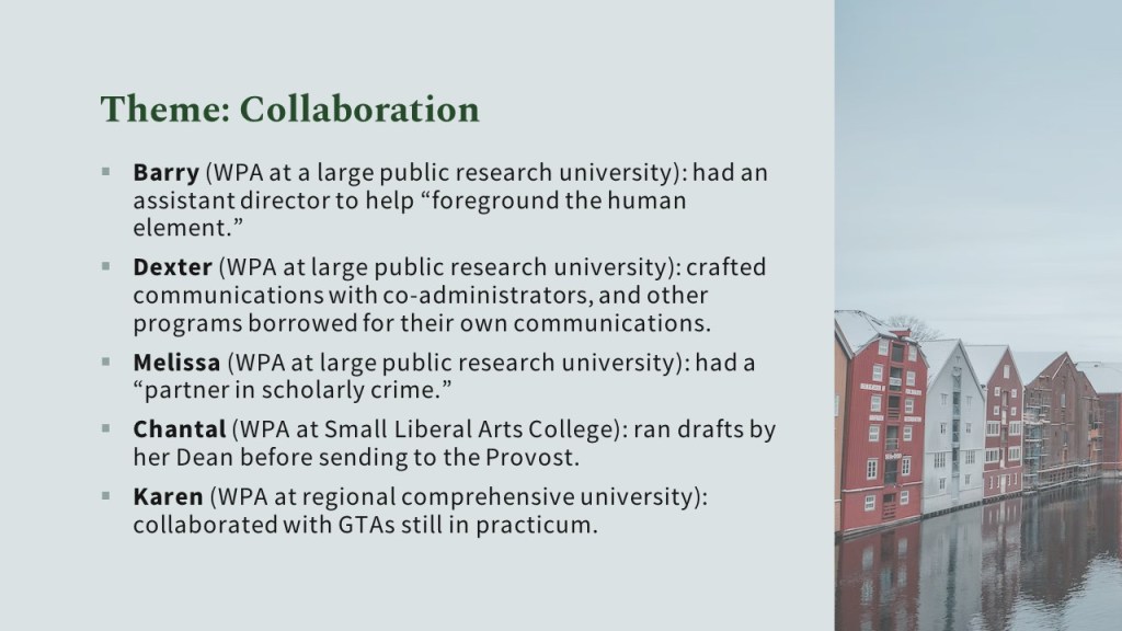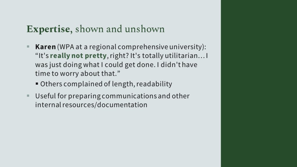 In this talk, I mention the outpouring of resources for teaching writing online that circulated through informal networks, such as social media, as well as more formally within writing programs themselves. While I cannot share the “Resource laundry lists” my participants shared with me, there are some good examples of public ones that are similar, such as this crowdsourced document for teaching writing online (I believe from Dr. Amy Wan), which includes links to other program-specific lists (like this one from the University of Pittsburgh).